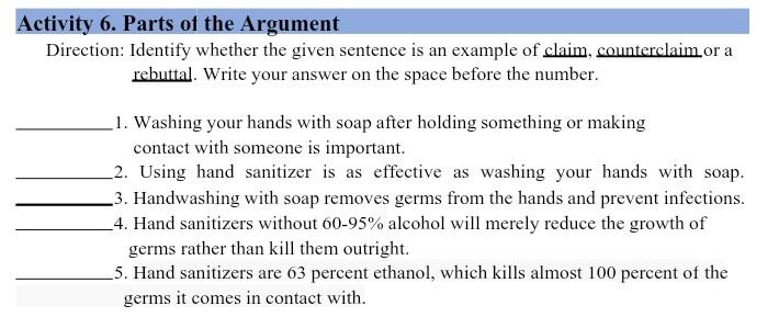 Solved Activity 6 Parts Of The Argument Direction Identify Chegg Com